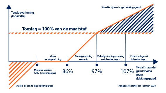 De grenzen van de toeslagstaffel worden jaarlijks met 1%-punt verhoogd om te waarborgen dat de financiële positie van Pensioenfonds ING sterk genoeg blijft.